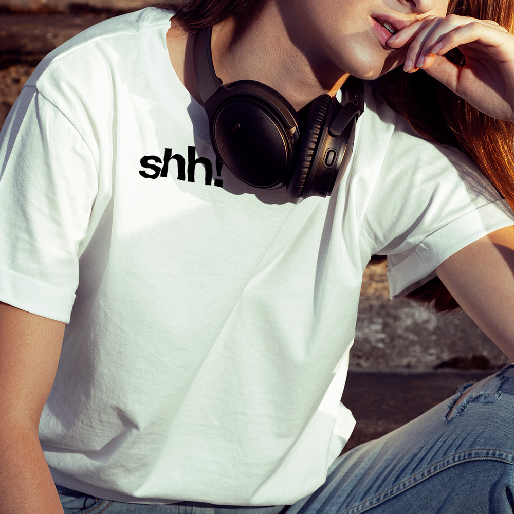 T-shirt básica feminina, com manga curta e 100% algodão. Estampa feita com silk screen (serigrafia).